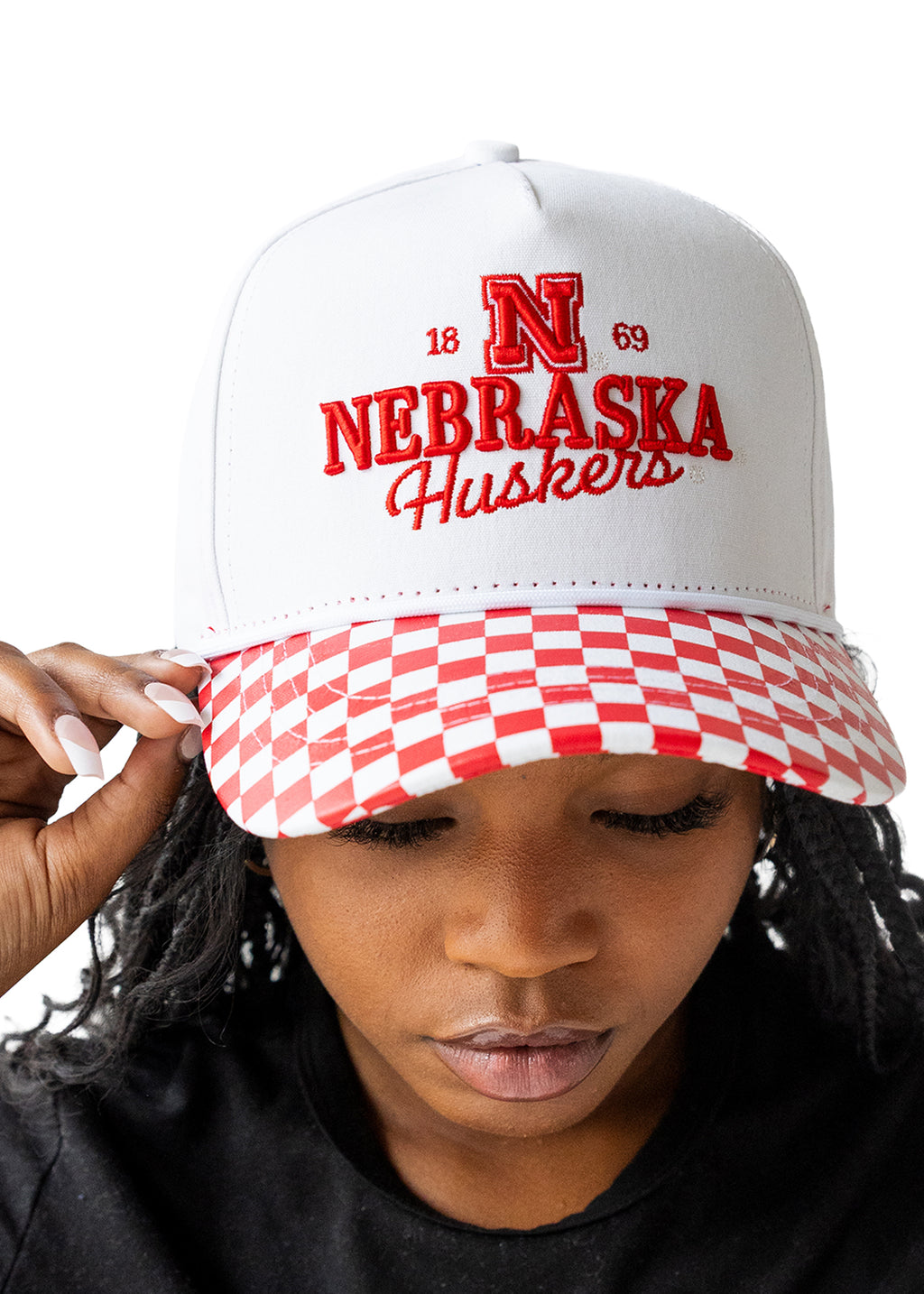Turn heads with this bold Nebraska Huskers snapback featuring a unique red-and-white checkerboard bill. The structured white crown highlights embroidered details with the iconic Nebraska “N,” the founding year 1869, and Nebraska Huskers script across the front. Designed with a flat brim, adjustable snap closure, and durable fabric, this hat blends vintage game-day flair with modern streetwear style. A must-have accessory for Huskers fans who want to stand out from the crowd.