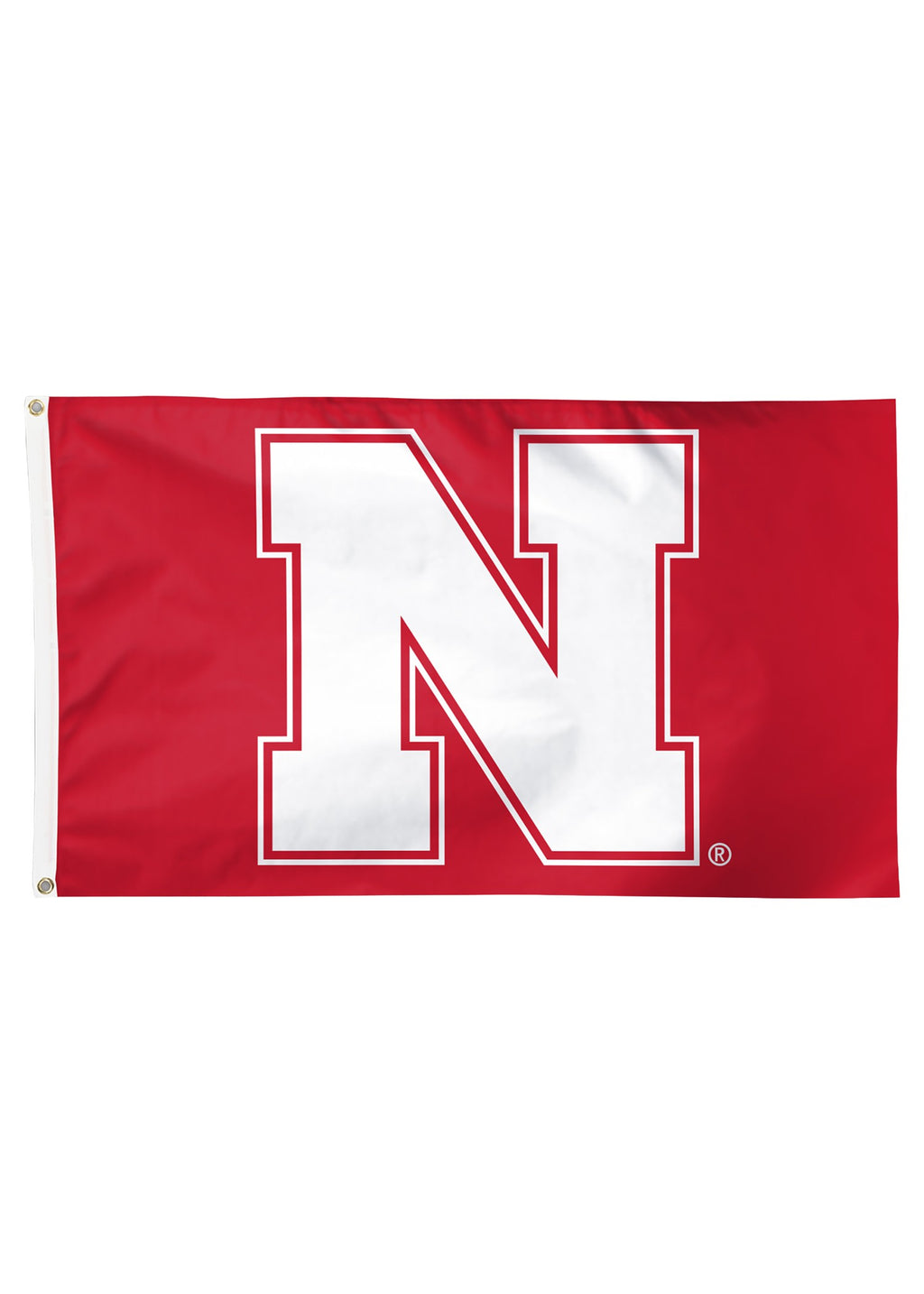 Red Block N - Deluxe Flag Single Sided Silk Screened 3ft x 5ft Nebraska Cornhuskers