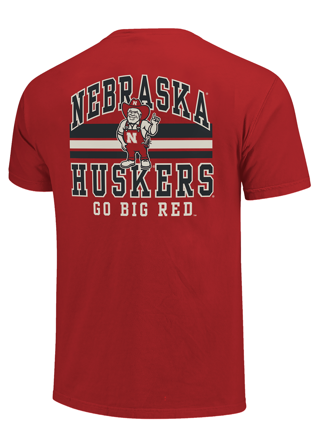 Back: Herbie Husker graphic with “Nebraska Huskers” and “Go Big Red” slogan