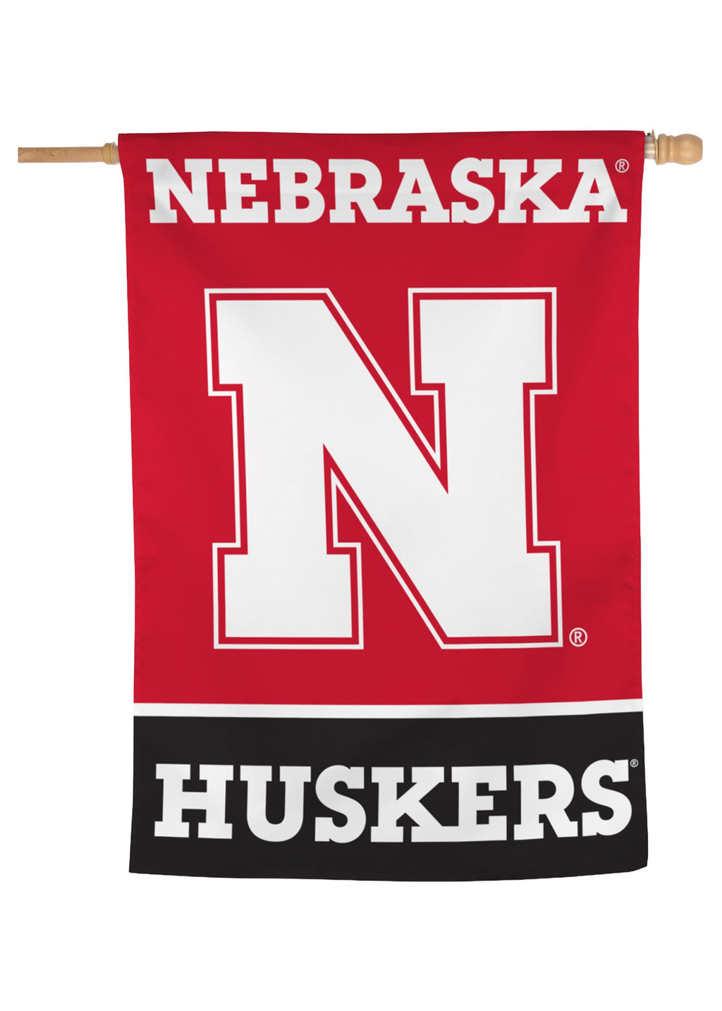 Red Nebraska Block N Black Stripe - Vertical Flag Single Sided Silk Screened 28in x 40in Nebraska Cornhuskers