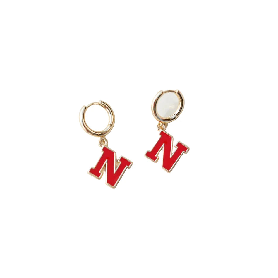 Elevate your game day look with our University of Nebraska "N" Enamel Huggies. These monochromatic red University of Nebraska "N" enamel huggies are a subtle nod for showing off your team spirit in style.